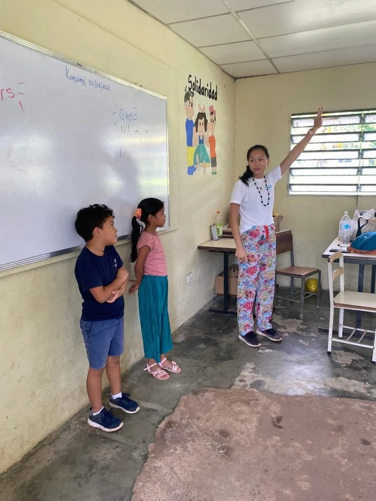 En Canaima, se evaluaron los colores, los números, las partes del cuerpo y los tipos de vestimenta, entre otros elementos básicos para comunicarse en inglés. También creamos una “gincana” que incluyó:
